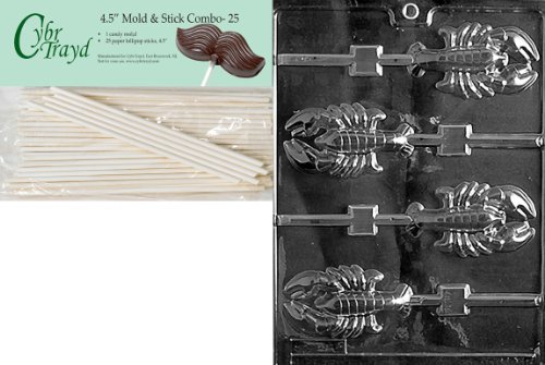 Cybrtrayd 45St25-N010 Lobster Lolly Nautical Chocolate Candy Mold with 25-Pack 4.5-Inch Lollipop Sticks