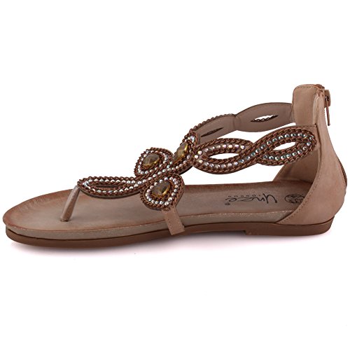 Binding : Apparel Product Description A classic look shows from your summer style when you put on these decorated summer sandals. These flat thong sandals have designed and decorated upper with back zip closure. Open toe design makes it perfect for summer. Soft PU made upper, while PU lining and sole that gives ultimate comfort. Flat sole that has crepe pattern to add grip while walking. 0