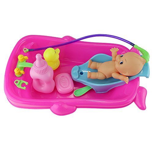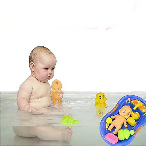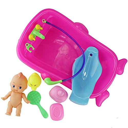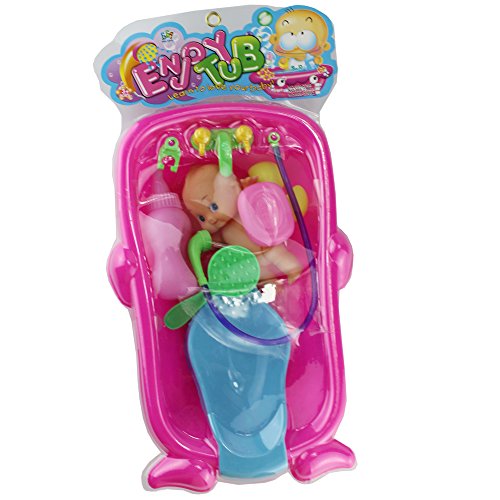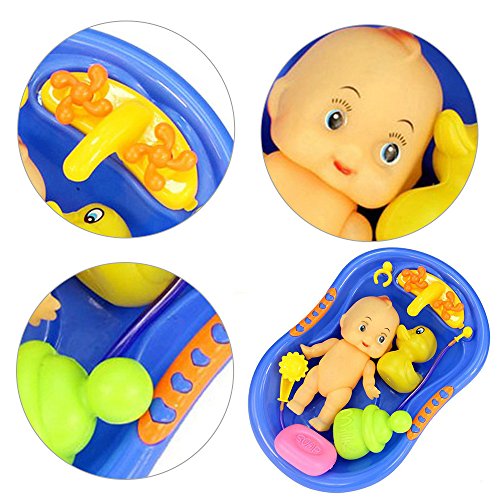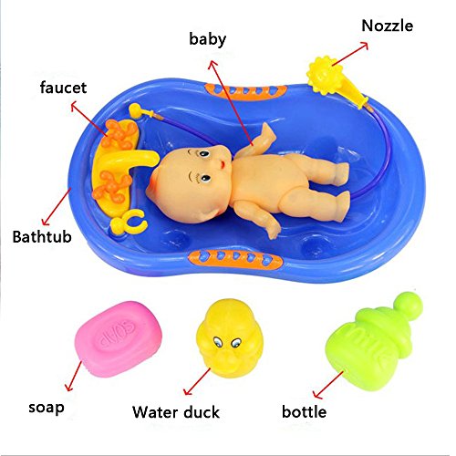 Title : 7 Pcs Funny Baby Bathtime Doll in Bath Tub with Shower Accessories Set Kids Role Play Toys Xmas Gift Red Blue