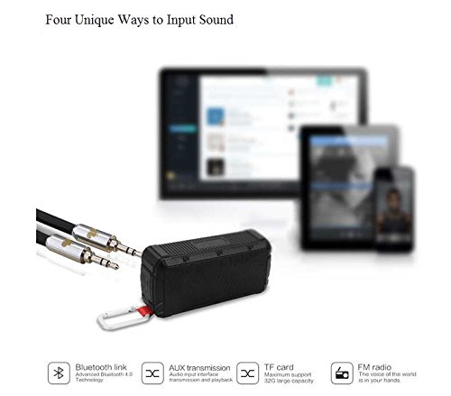 -. Feature : GREAT STEREO SOUND - INDOORS OR OUTDOORS - You're a music lover and don't ever like to be away from your tunes. You want the best sound possible whether you are camping, hiking, at the beach or poolside. The BTS10 is your solution. This 10W speaker, dual 5W speakers, powerful has a 2200 mAh Li-Ion battery for 10 hours of play time at full volume and up to 20 hours at indoor volume. The BTS10 is powered by Bluetooth 4.0 technology and stays connected to your device up to 33 feet away. / SO MANY FEATURES - The BTS10, of course, connects to any Bluetooth device such as your cellphone, laptop computer or tablet. With the built-in microphone you can make handsfree calls with your smartphone. Use the included auxiliary cord to connect to devices like a PC or iPod. Have your audio stored on a micro TF card? You're good to go as the BTS10 can accept a card with up to 32 GB of storage. Finally, you don't even have to bring your own music . The BTS10 comes with a FM radio. / A SMALL DEVICE WITH BIG SOUND - All the features are wonderful but mean nothing if your speaker doesn't produce great sounding audio from your electronics. The BTS10 truly delivers on providing full bodied, rich and deep sound. The DSP sound processing produces crisp and clean sound even with the volume turned up loud. The unit has booster amplifiers to reduce and minimize distortion. The acoustic noise reduction technology keeps the audio clear as a bell. / USEFUL AT HOME, HARDENED TO BE OUTSIDE - The BTS10's small design makes it easy to use anywhere in the home. Set it in the kitchen or on a desktop or bookshelf. There is no reason though to leave the BTS10 housebound. It is designed to survive the rigors of being outside. The speaker comes with an IPX6 waterproof rating. It is splashproof and rainproof. Yes, you can put it in the bathroom to use in the shower. The durable casing is designed to be shockproof to survive the inevitable drops. / BUY WITH CONFIDENCE - BW Distributors offers unique and useful products to make your life better. We are committed to providing you with a top rated customer service experience. We want you to be 100% satisfied with the purchase of your BTS10 blue tooth speaker. If for any reason an issue occurs know that we will make it right with our No Questions Asked 18 Month Warranty! We stand by our speakers and invite you to look at the outstanding Seller Feedback we have built up over the years.