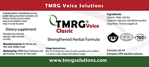 Studio : Dr Remez Ltd. Publisher : Dr Remez Ltd. Binding : Health and Beauty Product Description Get TMRG, the solution to your vocal and throat problems! The renowned TMRG Classic 30ml Vocal Cord Remedy 100% Natural Herbal Voice Supplement for professional speakers, singers, actors and educators