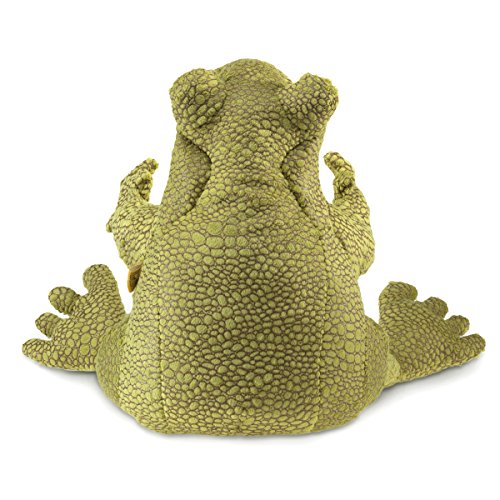 Ready for mischief, this Funny Frog puppet from Folkmanis begs for your attention with expressive eyes and wide open smile. Donned in a hip, chartreuse, textured fabric all the way to his gangly feet, this comical character comes to life with movable mouth and front legs. Ideal for use in interactive stage and puppet theater, Folkmanis Puppets are also great for teaching, daycare, school, pretend play, games and parties, or to pair with a book for storytelling. Easy to feed and care for, just add lots of love and snuggly fun. This puppet measures 7 x 5 x 12 inches (LxWxH). Folkmanis has been encouraging young imaginations to blossom since 1976 with its innovative and engaging specialty puppets, promoting creativity and discovery while winning nearly every industry, child development and kid-tested award. Folkmanis has grown to become the premier manufacturer of plush puppets worldwide, offering over 200 of the most heartwarming and realistically designed creatures--both exotic and familiar--on the market today. (Birthday: September, 2014).Feature