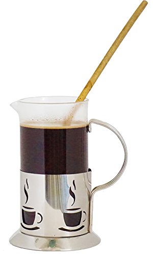 AS SEEN IN HOME AND KITCHEN MAGAZINE No more filter, just fresh ground coffee when you want it with no fuss every day of the year. Your Coffee Press is hand operated and is completely cordless way to brew your favorite coffee, tea or any other ground hot beverage. PROVIDES THE BEST OPTIONS AND THE MOST VALUE Because of the quality glass and stainless steel construction, this press is one of the toughest out there and can stand up to anything from every day use to camping's rigors. The glass is .4 mm thick, resistant to both cracking, scratching and breaking, while the stainless steel is resistant to rust and damage. From camping ground to fine dining this is a French press that will last for years of use no matter where you live or what your lifestyle is. MORE ABOUT THE COFFEE PRESS The 1 liter glass carafe is made from tempered glass and can hold up to four cups of coffee. Both the metal surround and plunger are made from stainless steel and can be washed by hand, while the glass carafe is dishwasher safe. This French press comes completely apart for easy washing, storing and brewing. And it's not just good for coffee! This press can brew anything from coarse grounds including tea, herb tisanes and any other beverage that your heart desires. WHEN USED FOR CAMPING, PREPPERS AND MORE Your Coffee French Press is the perfect gift for any preppers or campers in your life looking for a durable and reasonable gift. With no electronics whatsoever, no filters to replace and shatter resistant glass carafe, this French press is a great fit for all occasions and for all of the occasions in your life. 0