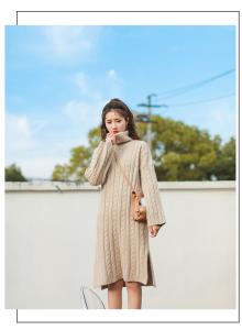 ニット素材のやわらかさとタートルネックのあたたかい印象が、女性らしさをかもしだしていますよね☆