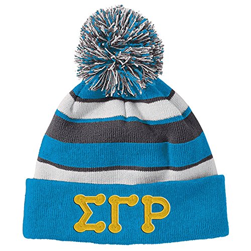 Product DescriptionSigma Gamma Rho Lettered Comeback Beanie Warm and soft 100% acrylic rib knit Tri-color pom-pom detail on top Folded hem Fit type: One size - Great cute Greek font.0