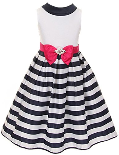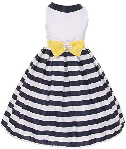 Keep her looking adorable & cool the whole day or night with this precious Sailor Gown! Complete with a reverse sailor collar, clean striped skirt & a crystal bow at the waistline, this gown is ideal for any special occasion!