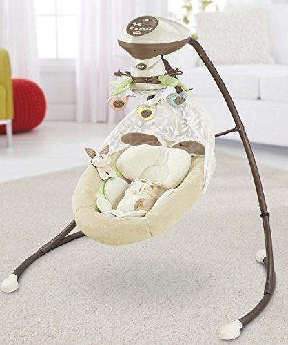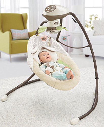 Swing away—and see what develops! Fisher-Price My Little Snugabunny Cradle ‘n Swing offers baby a sense of soothing comfort and security through two different swing motions, plush, deluxe soft fabrics, a deep and cozy seat, and a removable insert for newborns and infants with adorable bunny ears! Music, nature sounds and mobile motion help stimulate baby’s senses while soft birdies encourage eye-tracking, and the cute stuffed bunny toy is a soft and comforting 'Baby’s First' play time friend!