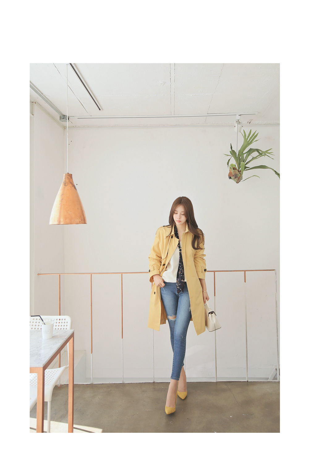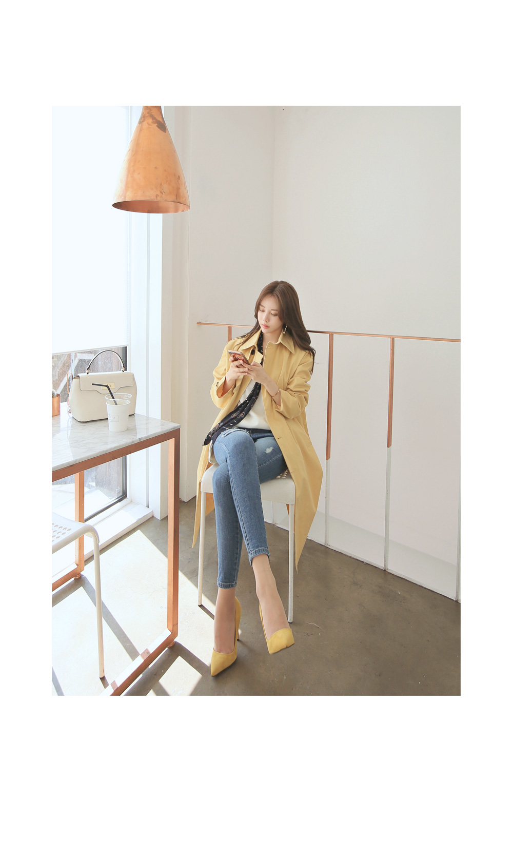 롱-한 기장감으로 멋스러움을 뽐내줄 트렌치 코트예요.