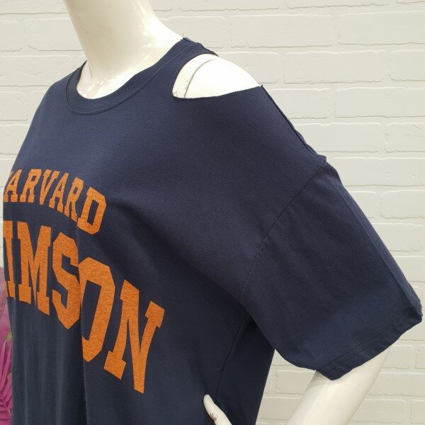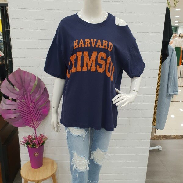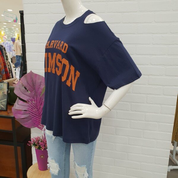빈티지한 느낌 어깨트임티예요.박시한핏과 살짝롱한기장감이 편하게 입기 좋아요.반바지와 스커트에 캐주얼 분위기로 굿이예요