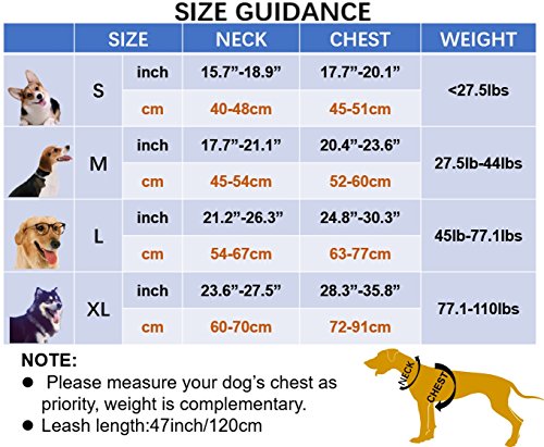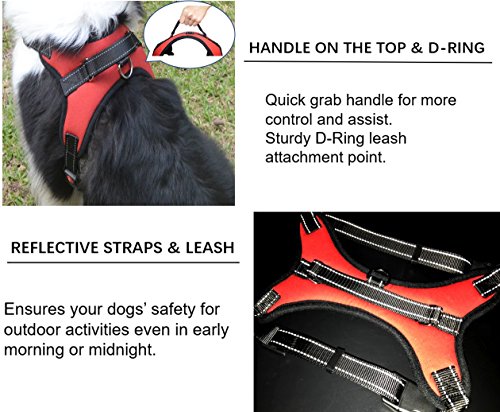 5.Available in Various Sizes Including S,M,L,Extra-Large. Our adjustable dog harness is suitable for small dogs, medium dogs, large dogs, such as Golden Retriever, Labrador, German Shepherd, American Bully Pit-Bull, Husky, Alaskan Malamute, Giant Poodle,Terrier and more.