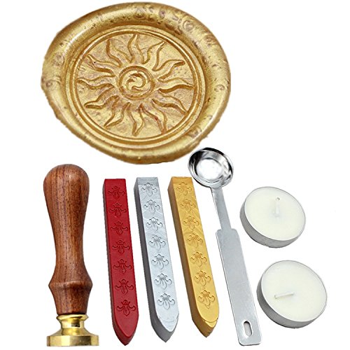 FQL Flame Vintage Rosewood Wax Seal Stamp Set With Gold Red Silver Sticks