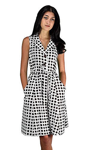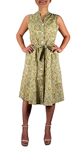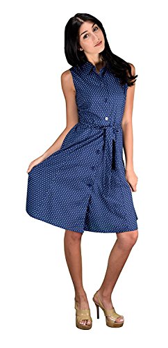 New button up dress by Peach Couture (a registered trademark). This Mid-Length Vintage inspired A-Line dress comes in a variety of patterns and designs ranging from fun and popular polka dot print to beautiful and elegant paisley print. Made of 100% cotton, this dress is perfect for Spring and Summer. Features V-Neck line, Sleeveless, buttons up all along the center with thread side belt loops, and Fabric Tie Belt. Nothing breaks through those cold-weather blues like a sun-kissed walk in the Polka Dot or paisley Shift Dress! Perfect for Any Occasion! Measurements: Small (Bust: 36", Waist: 28", Hips: 44", Total Length: 40"), Medium (Bust: 38", Waist: 30", Hips: 46", Total Length: 40"), Large (Bust: 42", Waist: 34", Hips: 50", Total Length: 41"), X-Large (Bust: 44", Waist: 36", Hips: 56", Total Length: 42").Feature