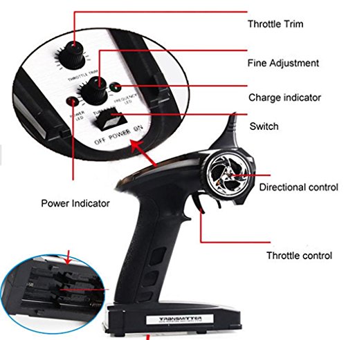 - Feature : There are forward, backward, turn left, turn right and righting function / Four-channel remote control boats / Traveling speed of 17-20 km / h / Powerful Motor System / Super-easy to control - Trigger for throttle