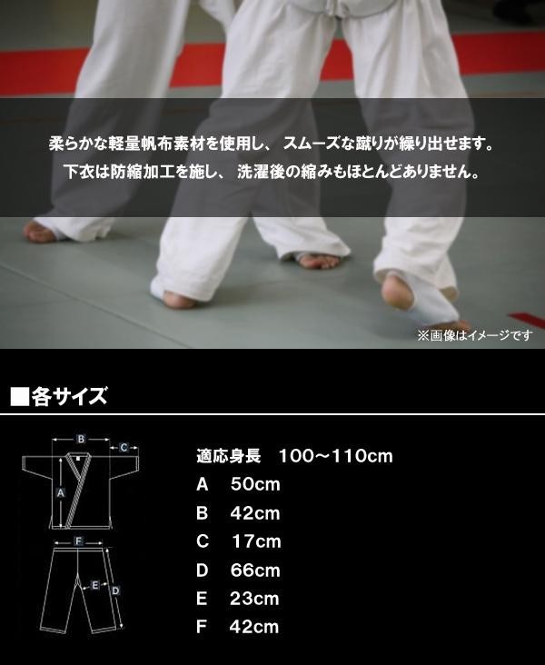 柔らかな軽量帆布素材を使用し、スムーズな蹴りが繰り出せる動きを重視しました。下衣は防縮加工を施し、洗濯後の縮みもほとんどありません。 |