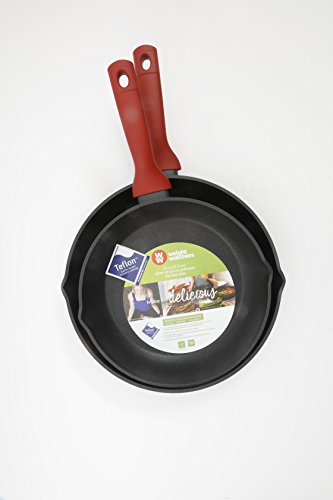 Weight Watchers presents two frying pans great for low-fat cooking with a non-stick, 3 layer Teflon platinum sr coating requires less oil for cooking, is scratch resistant and safe for use with metal utensils. Dual side pour spouts for mess-free draining and pouring of fats and liquids. Make healthy portions for the week with less fats and liquids. Includes a 5 year warranty.Feature
