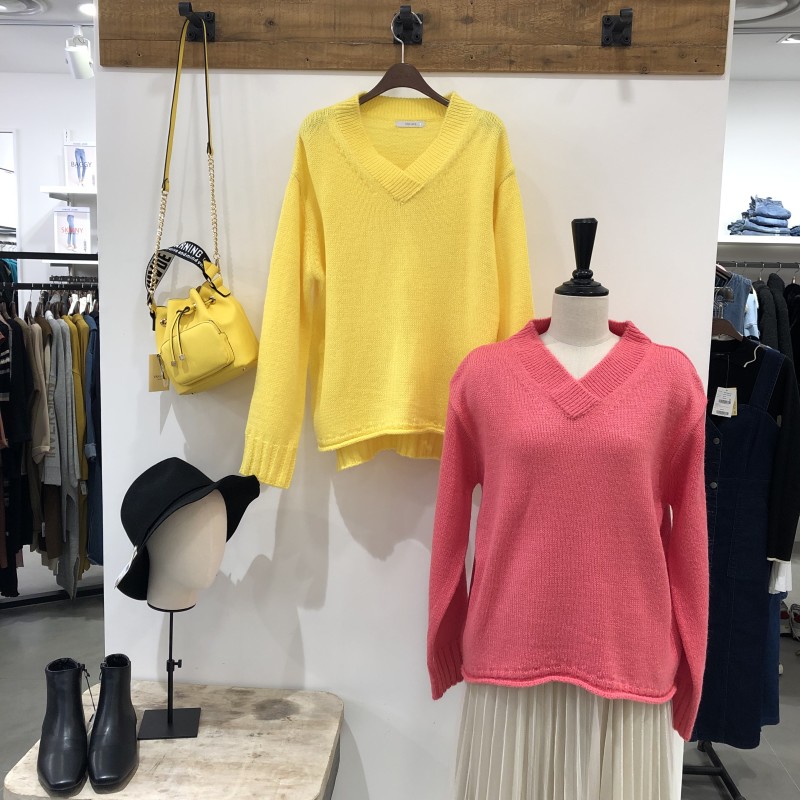 색감이 너무 이쁜 브이넥 기본 니트예요.. 청바지나 스커트에 함께입으면 굿!!