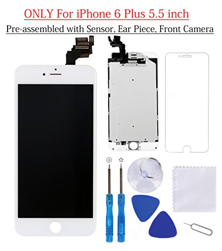 Glob-Tech iPhone 6 Plus 5.5 Inch LCD Display Screen Replacement Full Touch Digitizer Assembly with Proximity Sensor + Ear Speaker + Front Camera + Screen Protector + Repair Tools,iPhone 6 Plus White
