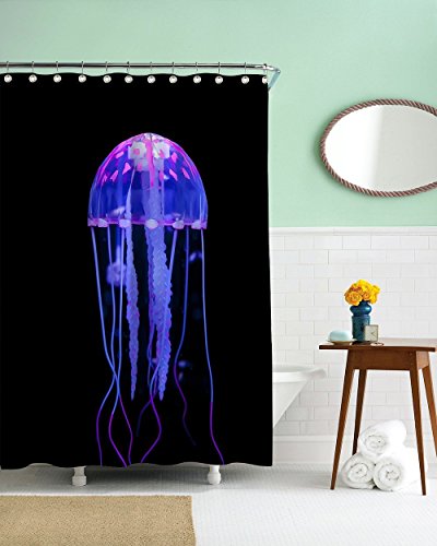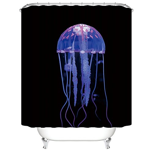 CHARMHOME Magic Glowing Jellyfish Underwater World Bath Home Decor of Waterproof Bathroom Polyester Fabric Mildew Resistant Shower Curtains 72"(w)x72" (h)Inch