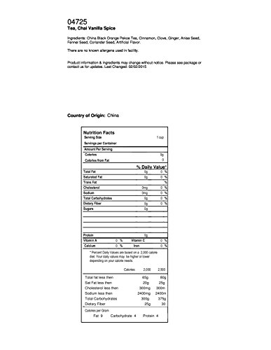 -. Feature : Mix of Black Orange Pekoe Tea & Cinnamon, Clove, Ginger, Anise, Fennel, & Coriander / Loose Leaf Tea