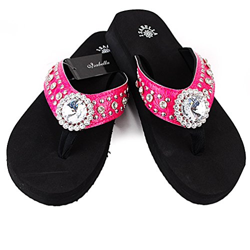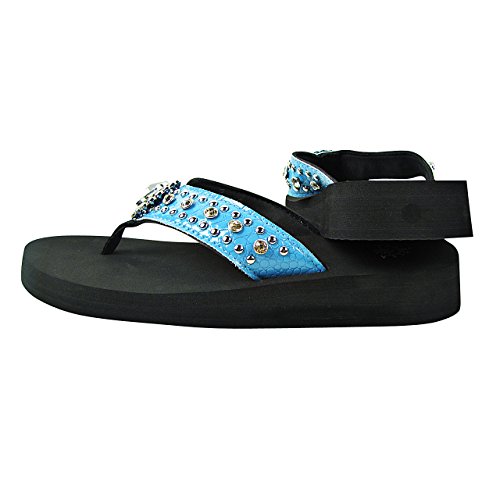 Women Western Rhinestone Bling Concho Flip Flops Sandals