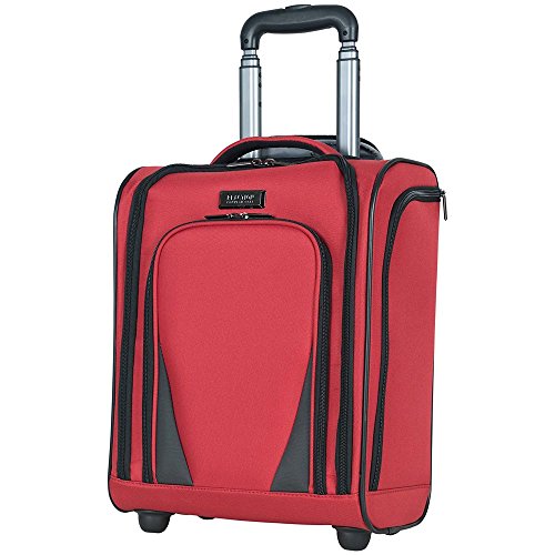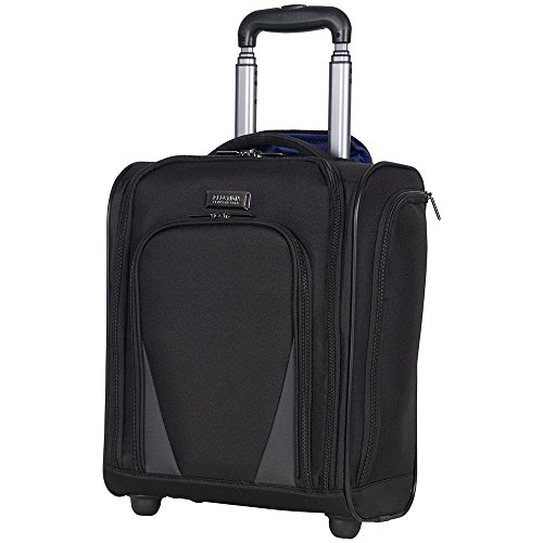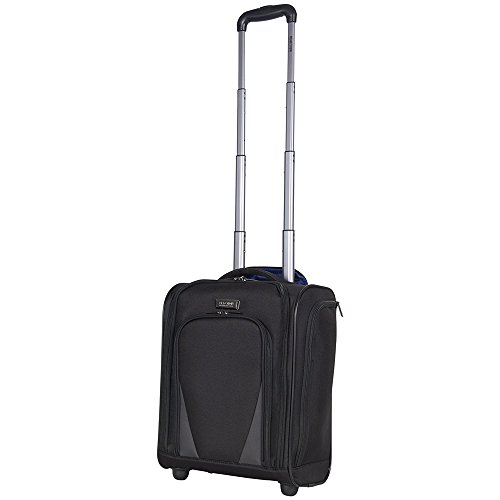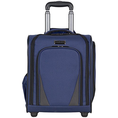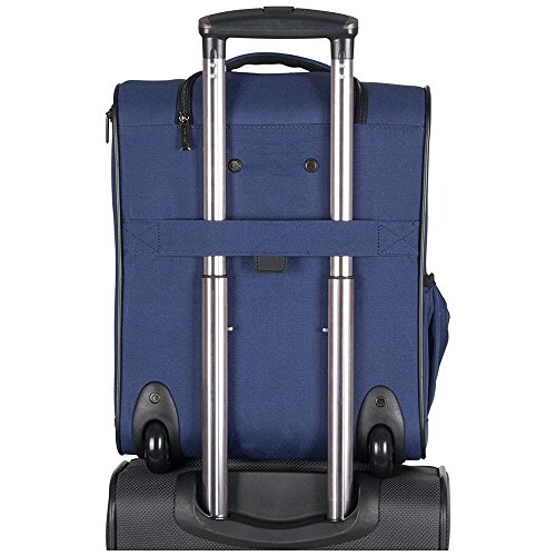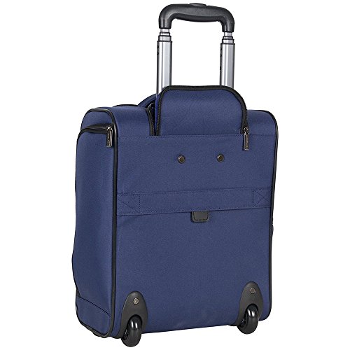 Product Description Ultra Lightweight ConstructionDurable 600D Polyester And Dobby Polyester Exterior With Fully Lined Tear-Resistant Navy Printed Polyester InteriorFront Exterior Features Front Zip Down Pocket With Three Zippered Accessory PocketsFits Under The Front Seat Of Most Airline CarriersMain Zip Down Compartment Includes A Garment Panel To Hold Belongings In Place And Two Wet Zipper PocketsSide Exterior Features An Open Elastic Top Beverage / Holster PocketEasy To Lift Padded Top Grab HandleSturdy Bottom Front Feet Keep Bag UprightSturdy Locking Retractable Push-Button Telescopic Trolley Handle Conductive For Simple, One-Handed UseRear Exterior Trolley Strap Fits Over Most Luggage Upright Handles For Hands Free CarryingMeets Most U.S. Based Airline Carry-On Size Requirements And Fits Into Most Airline Overhead Bin Compartments'_x000D_ Overall Size: 16.0" H x 13.5" L x 8.25" D_x000D_ Weight: 5.5 lbs 0