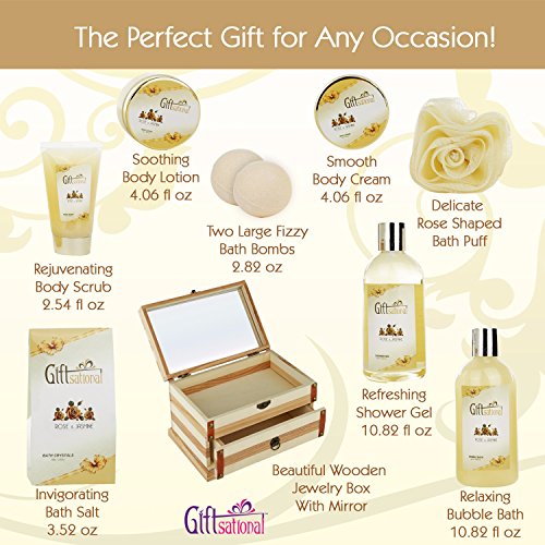 LINGERING FRAGRANCE: Even after hours of bath time, the pleasant aroma of our rose and jasmine bath gift set will continue to enchant you and keep you smelling fresh and clean. It's like wearing a perfume that leaves an amazing first impression, so you'll feel confident all day.