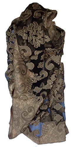 Binding : Apparel Product Description Elegant Pashmina Scarves/Wraps/Shawls. We have searched the world to bring you the best design and luxurious quality available. Elegant soft blend of silk viscose to drape around shoulders or tie in any one of many styles. Enjoy the height of fashion, polish your outfit with this amazing patterns. dry clean for best results Upgrade your wardrobe with savoir faire Panache ! Show your style while you transform a plain outfit to couture. Reversible. Sheer sections. Design is "Elegance" *Burnout design of Black Creamy Beige gossamer 0