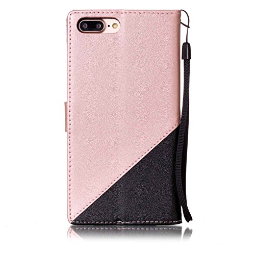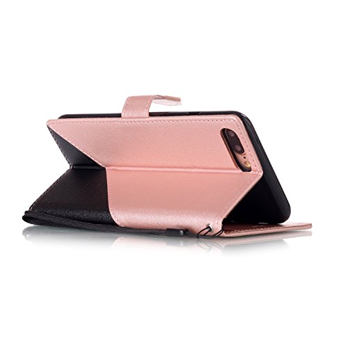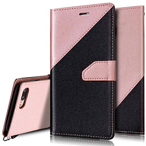 iPhone 7 Plus Case,iPhone 7 Plus Wallet Case,PHEZEN Elegant Two-color Design Book Style PU Leather Magnetic Flip Cover Protective Case with Card Slots for iPhone 7 Plus 5.5", Black + Rose Gold