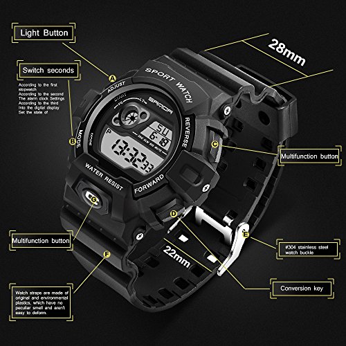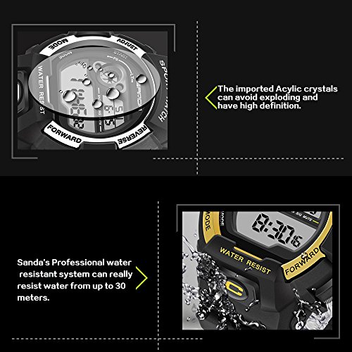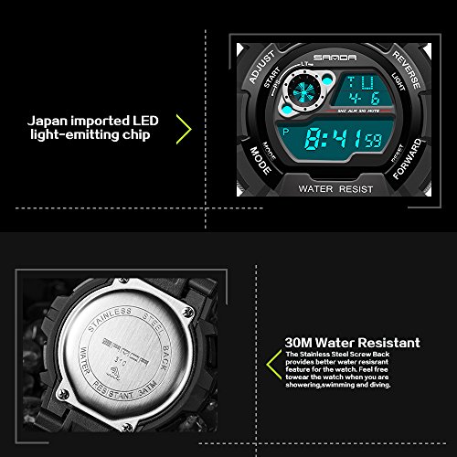 -. Binding : Watch -. Brand : SANDA -. Department : Unisex-child -. Feature : Japan original installation import movement. / Japan original installation import MAXELL battery. / 30 (M) meters waterproof. / Import PU resin strap. / [Note] We recommend that you do not wear it to swim. If you go swimming or diving, do not press any button under water! -. Label : SANDA -. Manufacturer : SANDA -. MPN : SD310 -. PartNumber : SD310 -. ProductGroup : Watch -. ProductTypeName : WATCH -. Publisher : SANDA -. Studio : SANDA -. Title : SANDA Digital Watch PU Resin Rubber Band Multifunctional Waterproof LED Sport Electronic Wristwatch