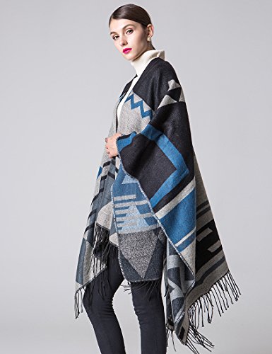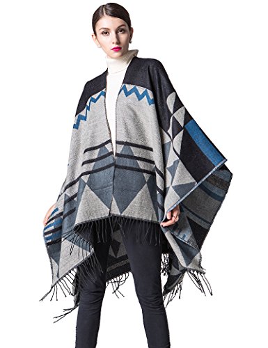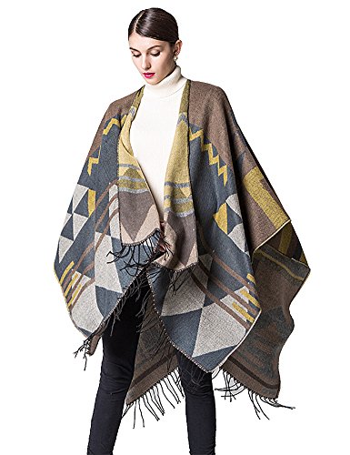 (IDEALSANXUN)/Accessories/Scarves/DIRECT FROM USA/IDEALSANXUN Women’s Bohemia Thickness Wool Cape Ethnic Fall/Winter Shawl Poncho with Tassel