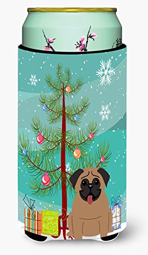 Caroline's Treasures Merry Christmas Tree Pug Brown Tall Boy Beverage Insulator Hugger BB4130TBC, Multicolor