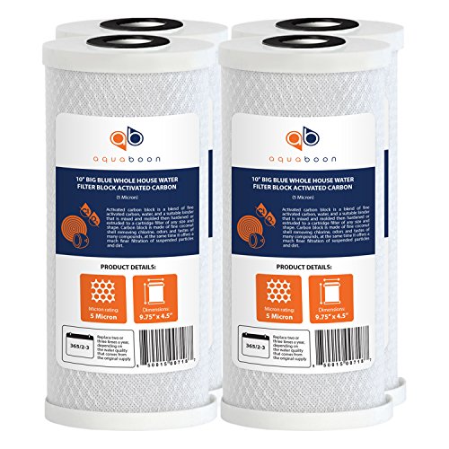 4-PACK Of 5 Micron Big Blue Coconut Shell Carbon Block Water Filter Cartridge 10" x 4.5" by Aquaboon