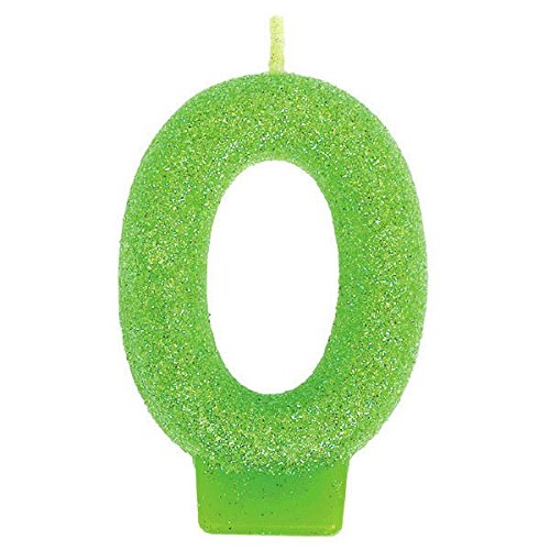 Amscan Glamorous Glitter Birthday Number #0 Birthday Candle, Apple Green, 3"