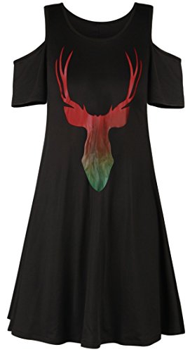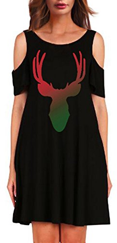 Sipaya Women's Christmas Reindeer Dress Cold Shoulder Short Sleeve Loose Dresses