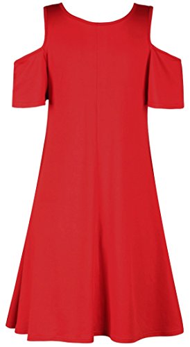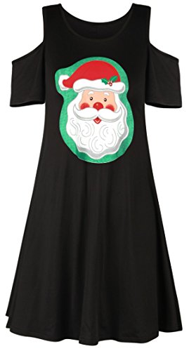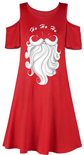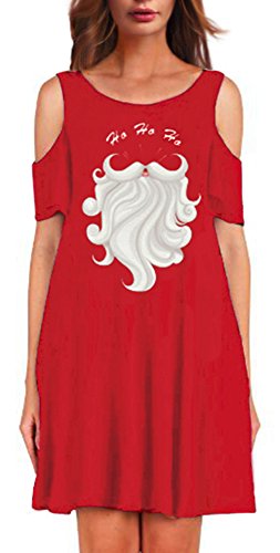 Sipaya Women Christmas Santa Claus Pattern Cold Shoulder Loose Fit Shift Dress