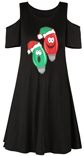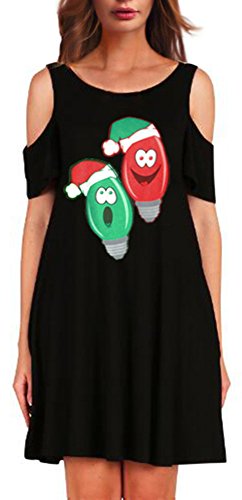 Sipaya Women Sexy Cold Shoulder Christmas Bulb Printed Dress Black for Xmas Party