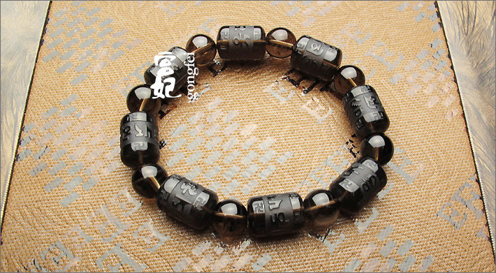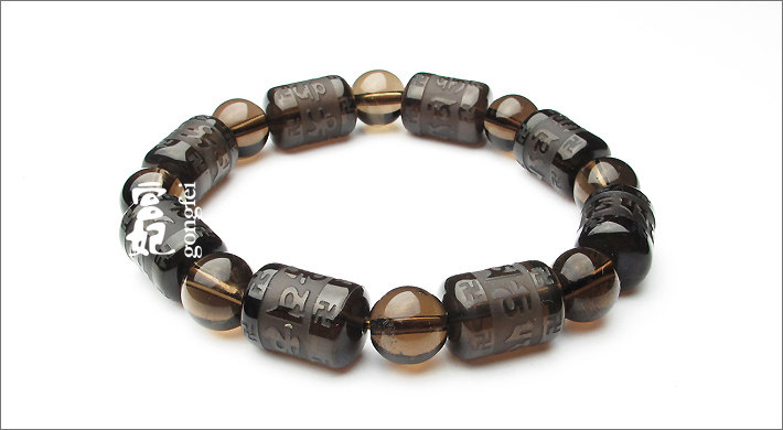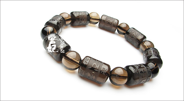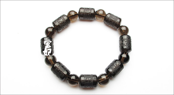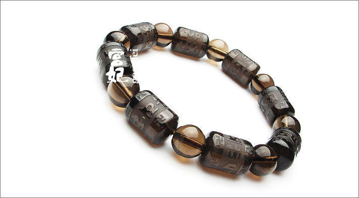 开光 天然水晶 烟晶 六字箴言 茶水晶手链 礼物