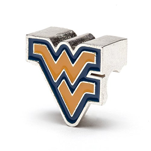 This West Virginia University Flying WV Bead Charm features a blue trimmed "WV" and fits most popular bracelets.It is hand painted by American craftsmen who know what it means to be a true fan. Made with high-quality stainless steel and comes with a lifetime guarantee.