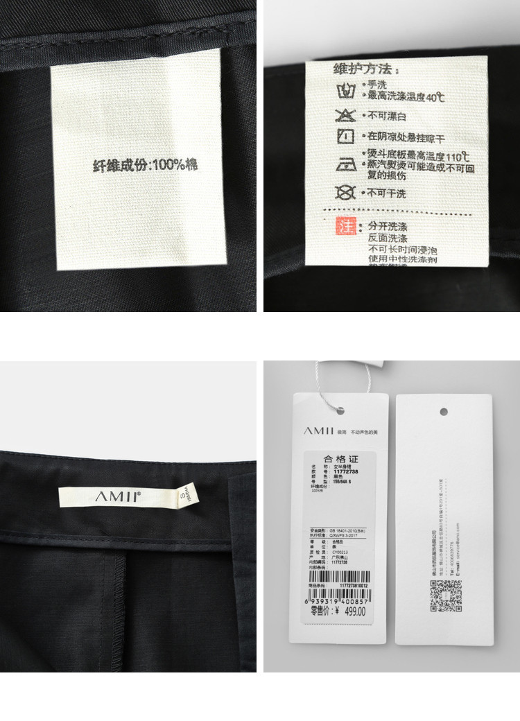 洗涤标准: 不可浸泡不可干洗不可漂白40℃以下手洗110℃以下垫布熨烫悬挂晾干