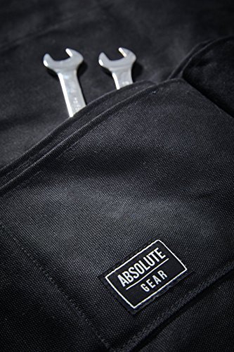 Workshop Apron with Pockets in Black - Heavy Duty Waxed Canvas - Fits Men & Women - 15x Pockets for Shop Tools and Accessories & 2x Large Loops - Adjustable Size to XXL - By Absolute Gear
