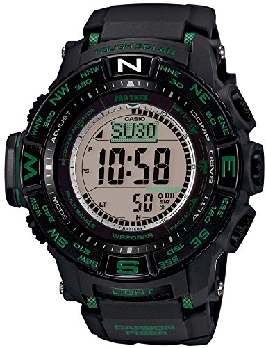 Authentic outdoor gear "pro Trek" Solar radio clock "multi-field line (PRW-3500)" which was equipped with a triple sensor from "combination line (PRW-6000)" durable genuine material (Real Material) New model of the "RM Series (RM series)" stuck to appeared. Improve the durability and insert the carbon fiber which is excellent in tensile endurance in the band of resin portion and 遊環. The windshield adopted a hard sapphire glass scratched was thoroughly pursue the durability that can respond to the outdoor scene. Function as a full-scale outdoor gear is New Purotorekku stuck to the exterior. / ■ Tough Solar (solar charging system) / ■ 20 atmospheric pressure waterproof function / ■ Radio reception function