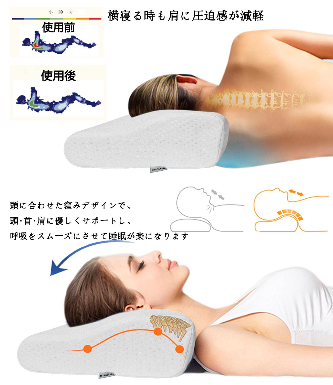 The IntiPal health pillow is ergonomically designed, it supports no pressure on the body, it supports the head, neck and shoulder firmly, the shape designed to keep the optimal sleeping posture is always comfortable.