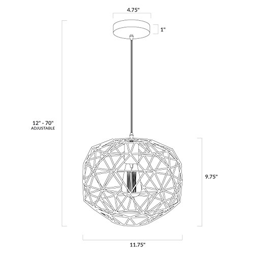 PRODUCT DIMENSIONS: 11.75"Dia x 9.75"H • Wire/Stem: 48" • Ceiling canopy: 4.75"Dia x 1"H. this light is ideal for foyers, kitchens, dining rooms, living rooms, and bathrooms.