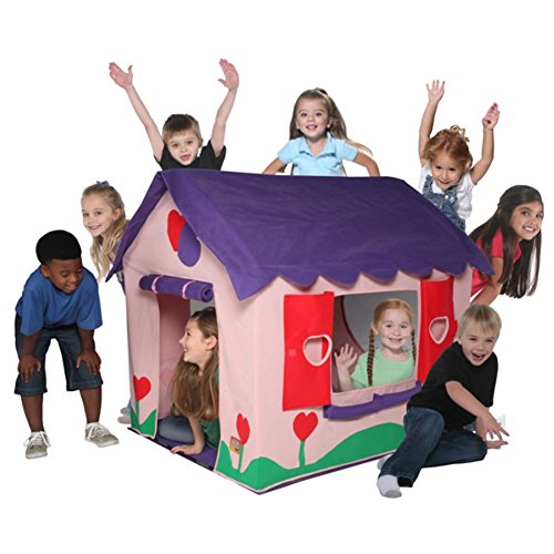 Features Child-size house with an indoor-only padded roof Doors and shutters open and shut for peek-a-boo fun Floor detaches for quick and easy clean up Fiberglass poles with protective plastic coating ensure stability and safety All tents meet flammability requirements ASTM-F963 specifications, but are not fireproof All non-woven fabrics and hollow-fill fiber meet CPAI-84 Clean only with damp washcloth Indoor use only Material: Other Material Details: Fabric Heat Resistant: No Mildew Resistant: No Warp Resistant: No Rot Resistant: No Outdoor Use: No Insect Screen: No Working Door: Yes Outside Locking Door: No Table Included: No Floored: Yes Floor Material Details: 100% Non-woven fabric material Roofed: Yes Roof Material: Fabric Flower Boxes: No Fence: No Chimney: No (wf) 0