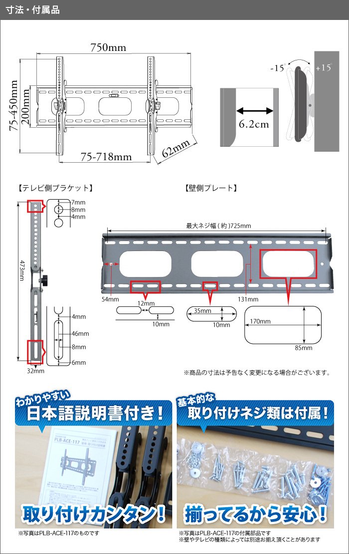 · The monitor size is 37 to 65 inches (it is a standard number of inches)