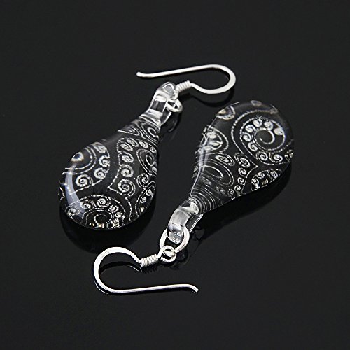 This beautiful Glass jewelry is 100% handmade by professional artisans. The vivid and unique colors would be a wonderful addition to any wardrobe. The included black velvet pouch also makes it the perfect gift for someone special. Made from .925 Sterling Silver ear wire and hand painted and hand blown glass with black resin finished in the back. Matching necklace is also available as a set, search Amazon for "NE0715BLK".
