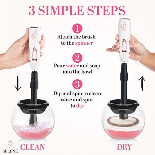 - OTHER BRUSH CLEANERS FAIL TO HOLD ALL BRUSH SIZES AND SEND YOUR BRUSHES FLYING: Selene Makeup Brush Cleaner will hold onto any brush as you spin it clean, without having to worry about constantly stopping to make sure it doesn't fly off. Selene Makeup Brush Cleaner is the ultimate beauty gift for every women.