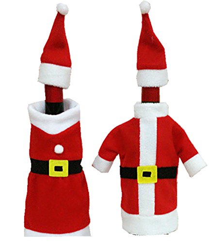 2 Sets Santa Claus Clothing Hat Dress for Christmas Wine Bottle Cover Decoration Bag (Couples)