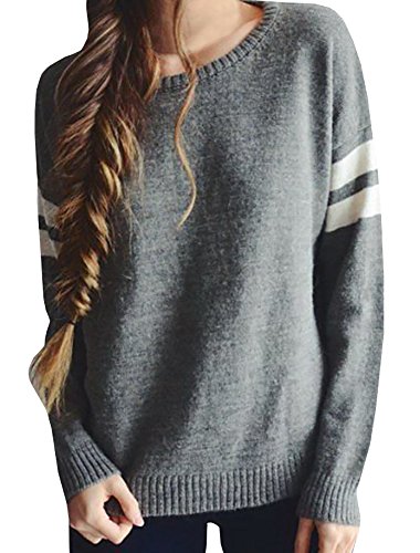Jiujiuyi Women's Casual Long Sleeve Crewneck Stripes Colorblock Knit Sweater Pullover