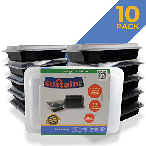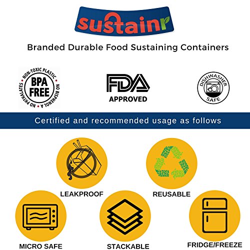 VERSATILE SUSTAINMENT: Sustainr Stackable Meal Prep Containers are made of high quality, FDA approved food safe plastic. What’s more, they’re leakproof, dishwasher, microwave, and freezer safe for premium versatility. Total of 28 oz. per container!